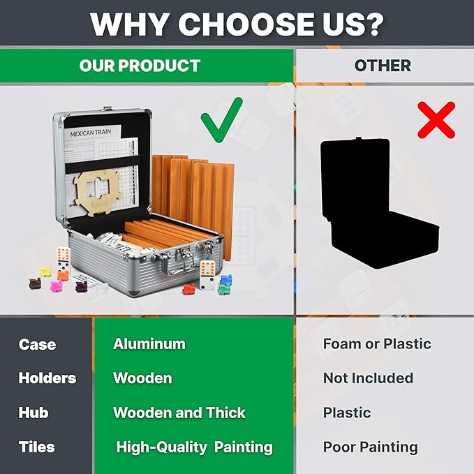 • Conveniently Store & Carry Mexican Dominoes in our Aluminum Case. Stylish, durable, & portable - take fun anywhere!