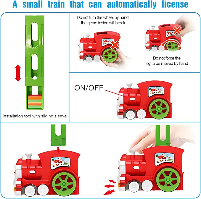 - ๐Limited Edition Domino Train Toy for Christmas ! -- Domino Train Toy Series Launches the Latest -- Christmas Style๏ผAdd a customized Christmas House! Play music, Jingle Bells.This customized domino train toy for Christmas 2024 will surely become the favorite of children, with the help of the electric train, the dominoes are arranged one after the other.Then you knock down the first domino, and a chain reaction occurs and they fall one after the other.