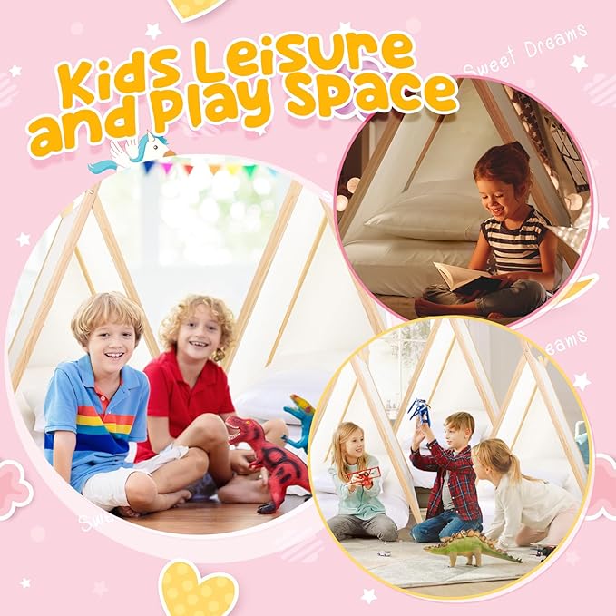 - Multifunctional Space: this kid indoor teepee tent can provide a safe play space for little children in kindergarten or daycare, suitable as a reading corner, play base or nap space to nurture their creativity and fun; They can also be applied for birthday parties and sleepover parties, creating a joyful gathering space and atmosphere