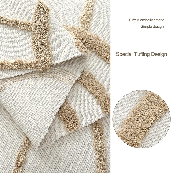 - [Hand Woven Cotton Rug] Crafted from high-quality cotton, our small area rug is a perfect blend of durability and comfort. With its natural, skin-friendly, non-shedding, and non-fading qualities, this rug offers a soft, breathable, and inviting feel underfoot, making it an ideal addition to any room.