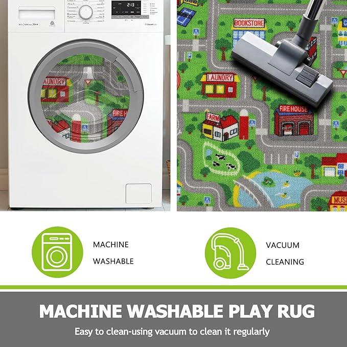 - 【Machine Washable Round City Map Rug】:① Easy to clean,using vacuum to clean it regularly or machine washing to clean mat completely. ②Perfect for children's bedroom,playroom,nursery room,classroom,living room,elementary school,preschool,daycare,kindergarten etc.