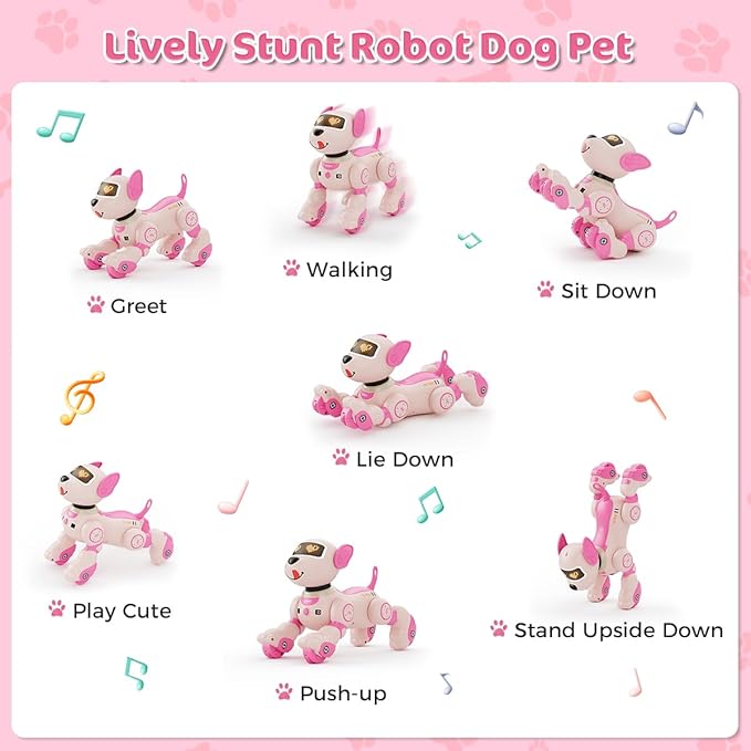 • 🐺【REMOTE CONTROL】Upgraded from old infrared version to 2.4GHz wireless control with no interference. With the included remote(requires 2 AAA batteries - not included) and robot pet’s built-in tracking sensors, your kid can walk the robotic puppy on a daily basis, guide it to the desired location and enjoy its performance of a variety of fun tricks. A positive way to burn kids extra energy and build a deeper communication with children and the toy dog.