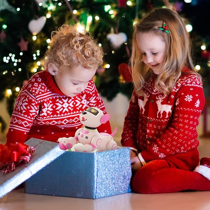 • 🐺【KIDS-FRIENDLY MATERIAL】The robot dog toy is made of nontoxic kid-friendly ABS materials with no sharp edges and points for children to play and hug with. Nicely packaged and perfect as Birthday/Christmas/Halloween/Party presents and gifts for boys and girls over 5 years old. A long-lasting electronic friend that provides all the fun and companionship of a real dog, without the added costs, as well as the potential risk of a child-dog interaction.