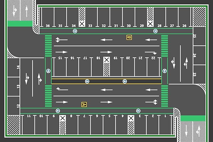 HUAHOO Kids Carpet Playmat, Car Rug for Toy Cars and Trains, Non-Slip Play Mat for Playroom & Classroom (Parking, 32x47in)