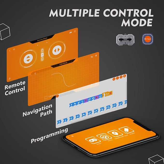 - Remote or APP Control: This technic robot can be controlled by the remote or the phone APP, remote control allow the robot moves toward all directions and do 360°rotating stunt. The APP includes four control modes, (drive mode, path mode, gravity sensing mode, and programming mode) which will bring children to the world of coding in an joyful way.