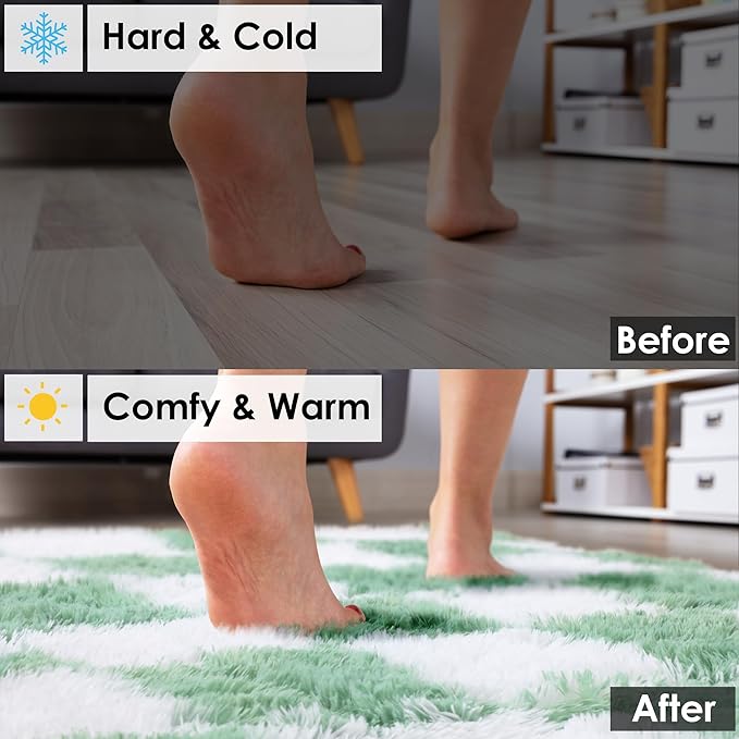 - Ultra Soft Fluffy Rug -- Feels like stepping on a fuzzy cloud! Our shag rug is made of microfiber and spongy interlayer, and the shaggy rug surface is covered with billions of 1.6" plush fibers pile, which can provide a warmth on the cold floor and feels comfortable when walking barefoot. Great for creating a cozy area for kids, family and pets.