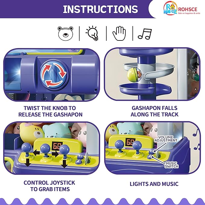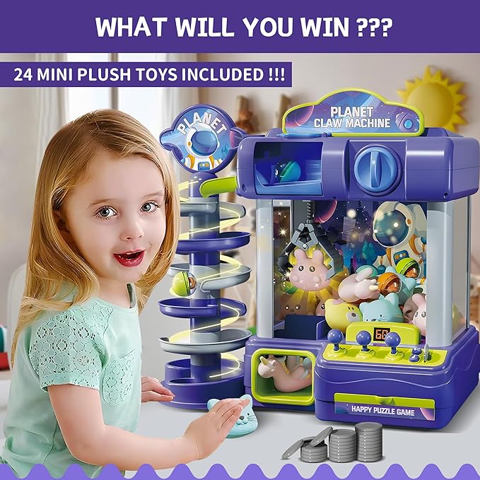 - Dual Game Mode for More Fun: Not just a claw machine — drop capsules into the spiral slide or grab them with the claw! This unique 2-in-1 play boosts engagement, encourages hand-eye coordination, focus, and problem-solving skills.