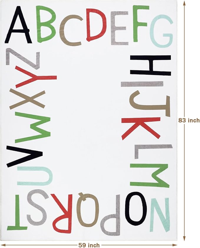 Topotdor Rainbow Kids Play Rug Alphabet Nursery Area Rug Extra Large Soft Crawling Play Mat for Children Toddlers Bedroom (59x83 inch,Multi Color)