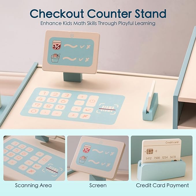 - ROLE-PLAYING FUN: Here, they can take on different roles and experience the fun of being a shopkeeper, customer, or shelf manager. Children can simulate shopping scenes, pick their favorite items and place them in the shopping basket, or play as shop attendants serving other friends, learning to communicate and share.