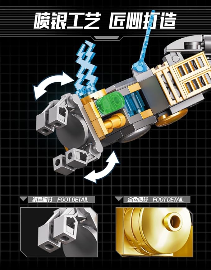 • This perspective mecha violence bear building kit features a unique mecha half body design authorized by Tezuka Productions. We have designed this trendy anime kit for mechanical enthusiasts. The gorgeous transparent components showcase the charm of the mechanical bear's curved contours and internal details. Fully handcrafted silver spraying technology, restoring the mechanical texture of the metal.