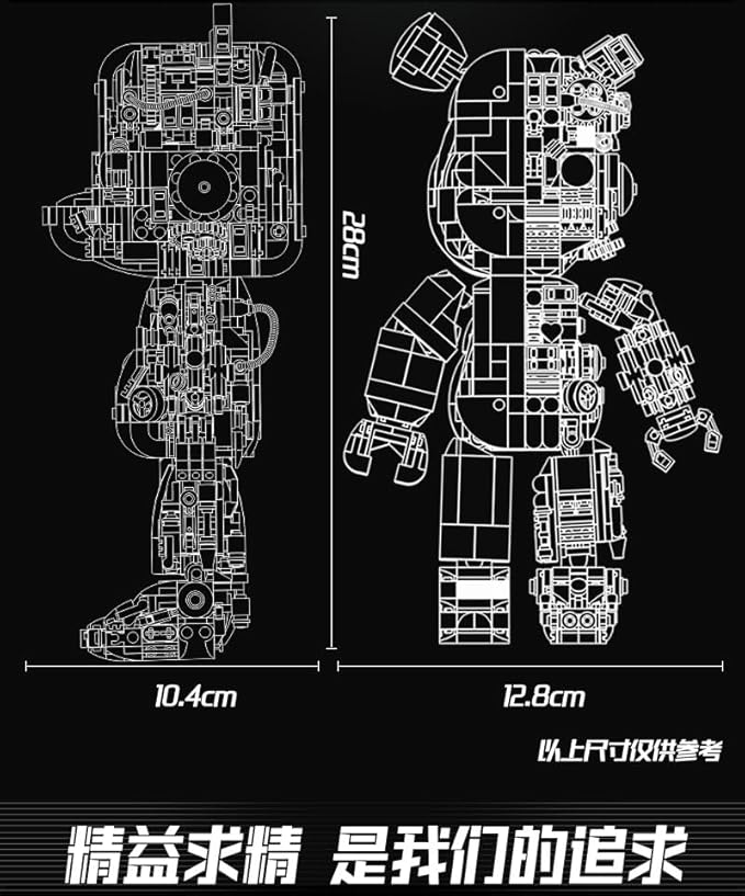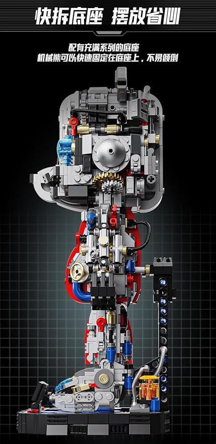 • This perspective mecha violence bear building kit features a unique mecha half body design authorized by Tezuka Productions. We have designed this trendy anime kit for mechanical enthusiasts. The gorgeous transparent components showcase the charm of the mechanical bear's curved contours and internal details. Fully handcrafted silver spraying technology, restoring the mechanical texture of the metal.