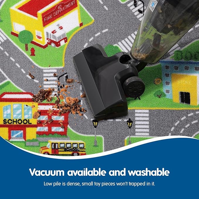 - Safety Non Skid: The Kids play rug for cars and trucks is made of 800g thick latex(rubber) backing that keeps it from slipping,and will stay in place ,not moves around way