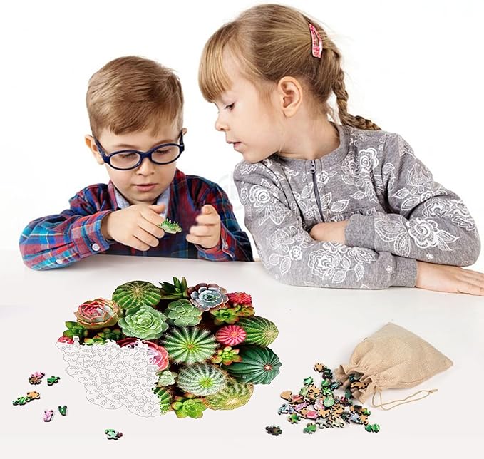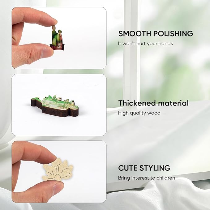 - *Fun Challenging: Ball Cactus and Succulent wooden jigsaw puzzle for kids and adults includes 300 Pcs Unique 3D Shape, each piece Thickness 5mm, 40% thicker and weighs almost twice heavier than other normal wood puzzles, finished size is Premium Wood puzzle Cool present Intersting gift
