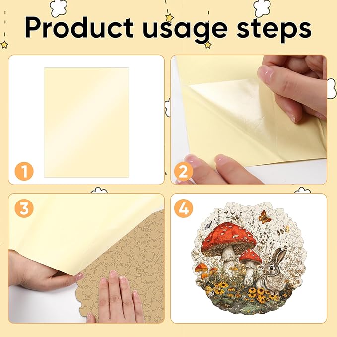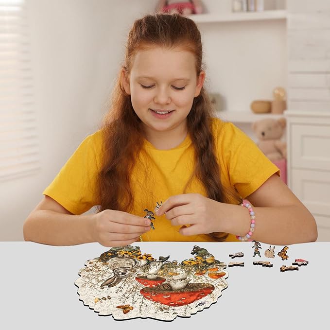 - *Fun Challenging:Rabbit & Mushroom Easter Bunny wooden jigsaw puzzle for kids and adults includes 200 Pcs Unique 3D Shape, each piece Thickness 5mm, 40% thicker and weighs almost twice heavier than other normal wood puzzles, finished size is Premium Wood puzzle Cool present Intersting gift