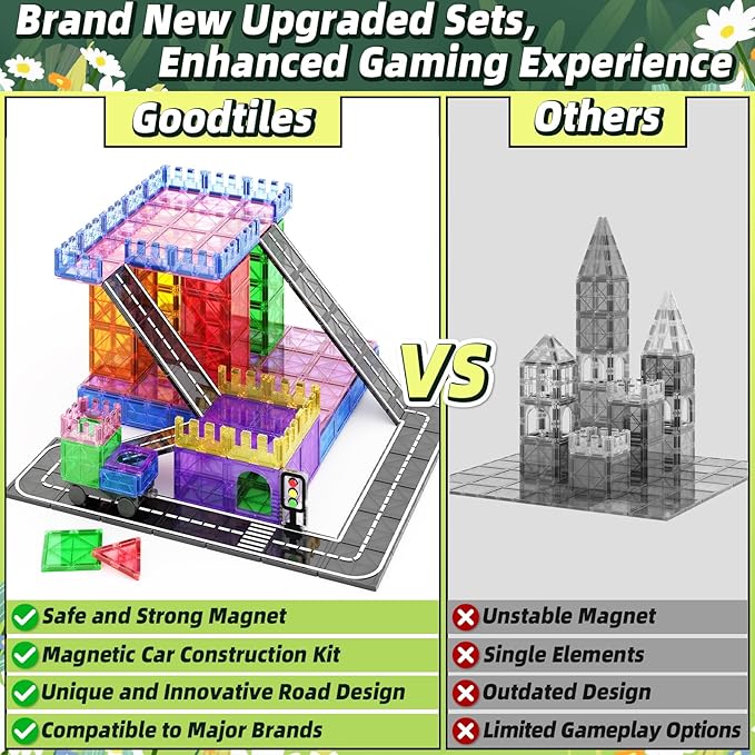 - 【Ultimate Gifts for Kids】The unique and engaging experience of the magnetic tiles road set suitable for children across different age groups, making them an exceptional choice for entertainment, early education, family bonding or ourdoor toys. Whether it's a birthday celebration, Christmas surprise, Back-to-School gifts or any special occasion,it is widely welcomed toys for boys and girls aged 3 4 5 6 7