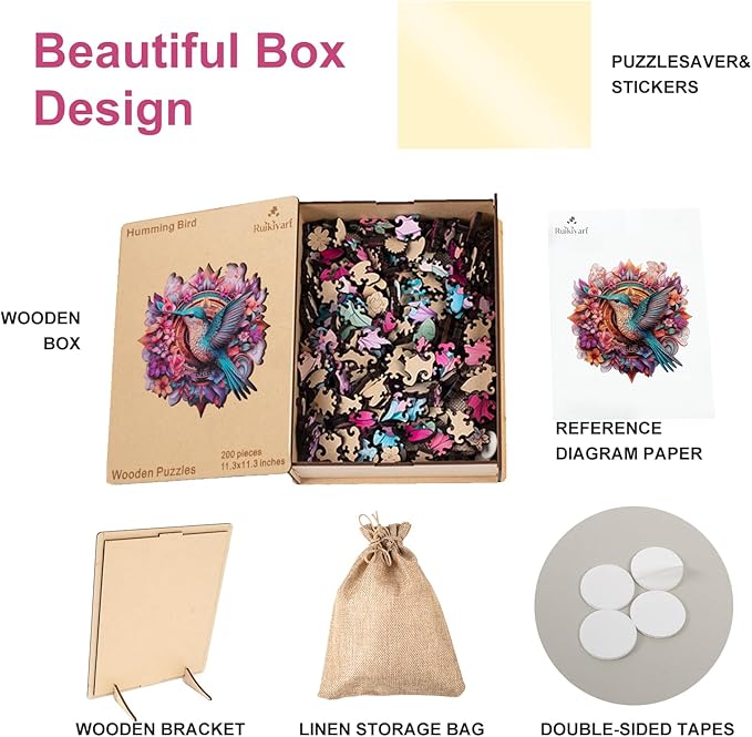 - 【UNSURPASSED QUALITY】: The top production technology, we use 5mm thick HDF wood, UV printing, laser cutting, precision 0.03mm. The texture is extremely smooth, they will not break or fade, free of formaldehyde and odor, and have perfect locks! Our vintage hummingbird wooden puzzles can be surprisingly preserved for decades