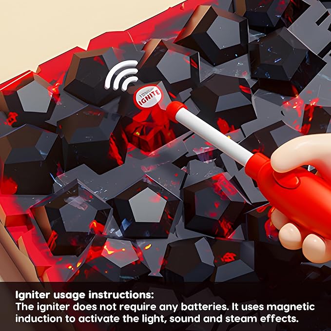- Interactive Features: With lifelike sound effects and lighting, our BBQ grill playset brings the experience of grilling to life for kids. The igniter triggers realistic lights and sounds when near the charcoal ignition area, creating a water vapor smoke effect for added fun. Your child will feel like a real chef while playing with this interactive toy