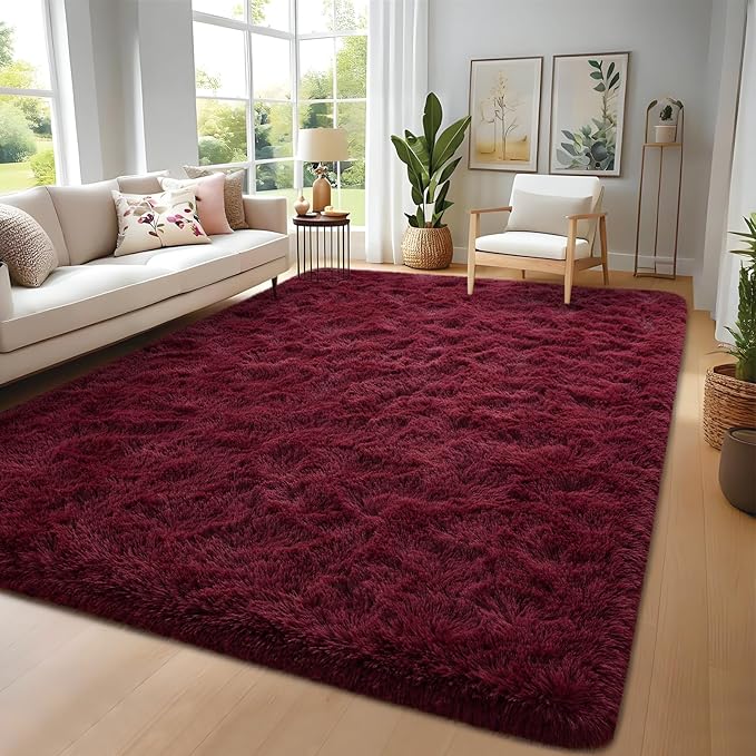 Nuttumico Extra Large Burgundy Fluffy Area Rugs for Living Room, 8x10 Feet Ultra Soft Indoor Modern Plush Fuzzy Rug, Thickened Carpet for Kids Playroom, High Pile, Non Slipping