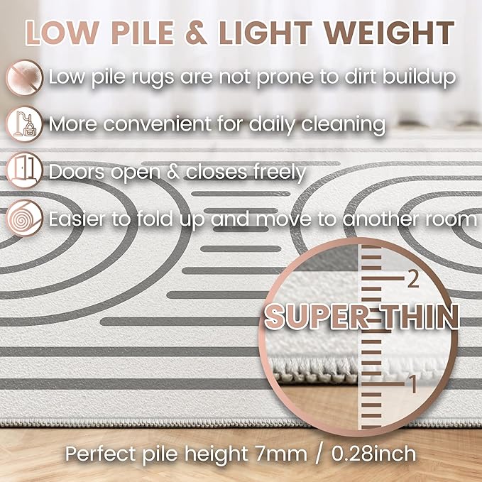- 【SKIN & PET FRIENDLY MATERIALS】Selected high-quality materials, safe and non-toxic, does not contain chemicals that may be harmful to health. This low pile rug also make pet dander and hair won't get trapped inside, pets' paws won't get snagged or get caught on edges.