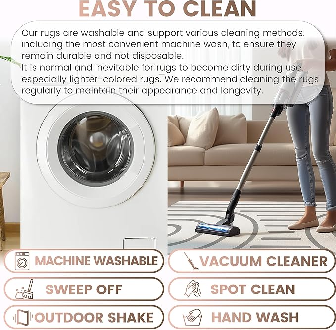 - 【NON-SLIP BACKING & ENDURING】The bottom of this large rug is made of Cotton+TPR rubber backing to help the living room rug stays securely in place. Reducing the risk of tripping and protecting your floors from scratches. And it’s designed for high traffic areas, sturdy reinforced overlock edges.