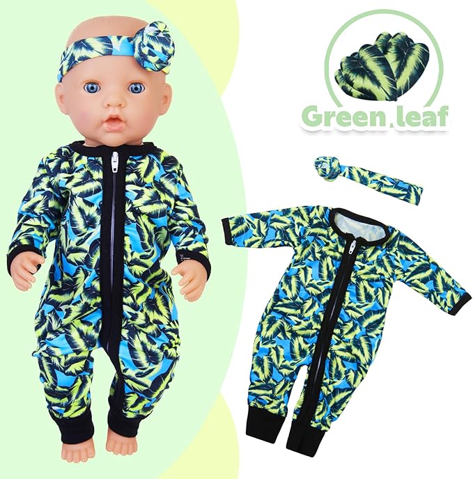 • 【Perfect Design for your Baby Doll】 1 Bamboo Leaf Pattern Design Jumpsuit + 1 Rose Jumpsuit Pattern Design Jumpsuit + 1 Hornbill Pattern Pink Design Jumpsuit + 1 Periwinkle Pattern Design Jumpsuit + 1 Green Leaf Pattern Design Jumpsuit (Please kindly know that Dolls are NOT included)
