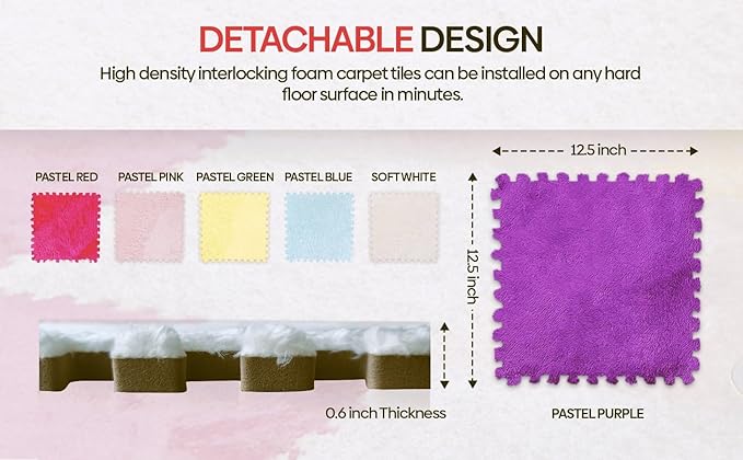 - Crafting Safer, Prettier Places: Baby Play Mats For Floor: This soft foam puzzle floor mat blends safety with style effortlessly; Our modern foam carpet tiles come in Colorful Plush Tiles, redefining any space and providing the protection it needs