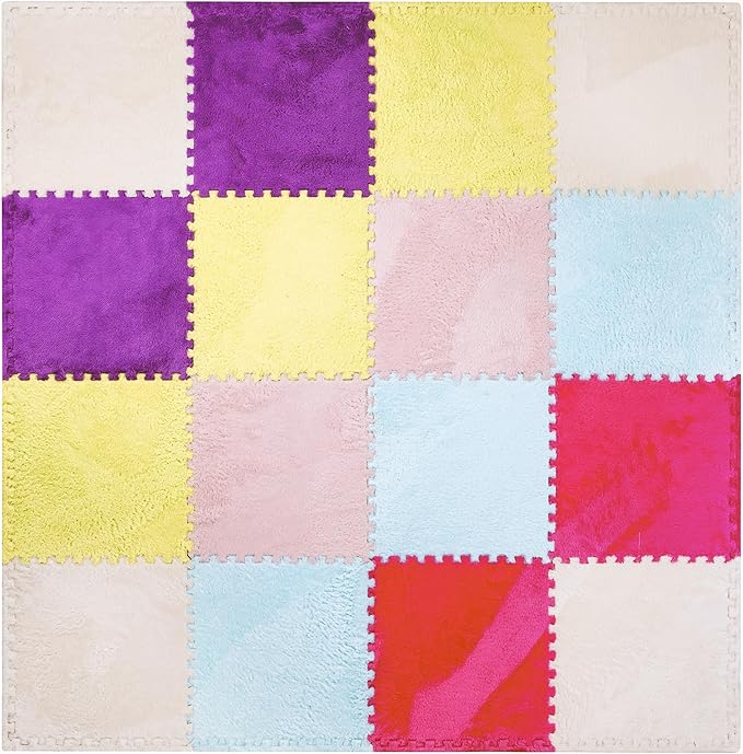 16 Piece Carpet Squares Puzzle Mat 49" x 49" Plush Interlocking Carpet Tiles, Foam Floor Tiles for Baby Play Mat - Kids Soft Play Mats Anti Slip Jigsaw Flooring Playmat Playroom Rug (Multi-Color)