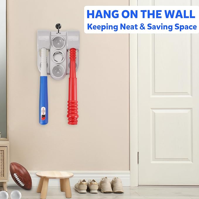 - 【Convenient Storage and Portability】This tball set for kids is designed with four space-saving features: a "hang-on-the-wall" design, stretchable bat and batting tee, a storage bag for balls, and the ability to store two balls in the base. You can quickly assemble and disassemble the set, making it hassle-free to store or carry wherever you go.