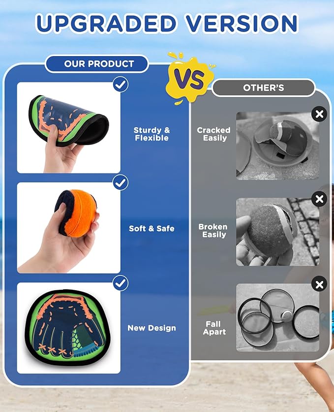 • Soft Yet Sturdy, Play-Ready - Upgraded soft sticky paddles and balls offers enhanced durability and comfort, enable easy throwing and catching for toddler boys and girls. perfect for family gatherings, beaches, or backyard fun