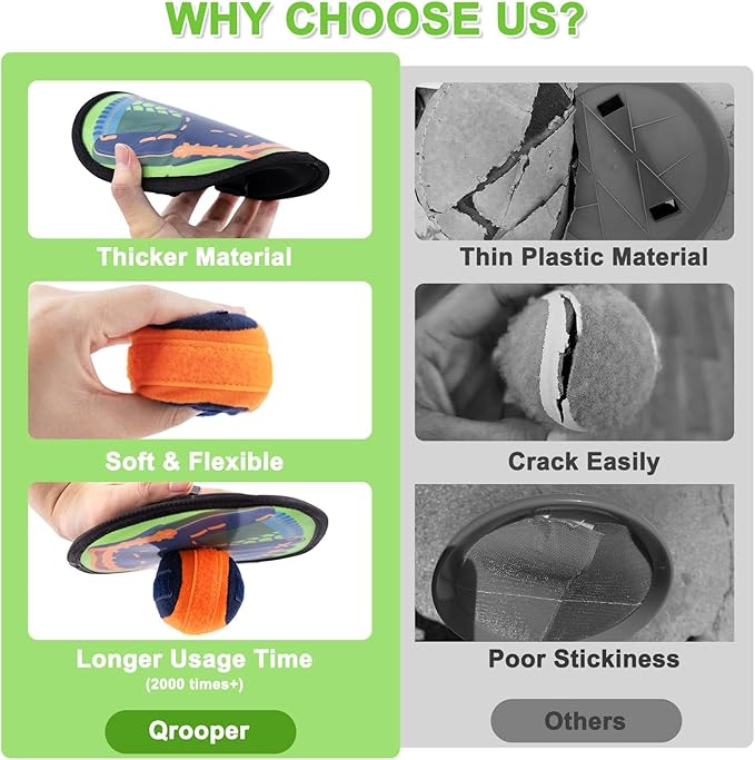- SOFTER AND MORE COMFORTABLE: Our upgraded ball catch games for kids boast a softer, stronger, and stickier construction, ensuring effortless catching and a comfortable feel for boys girls; Whether it's a family reunion or a day at the beach, the fun never ends