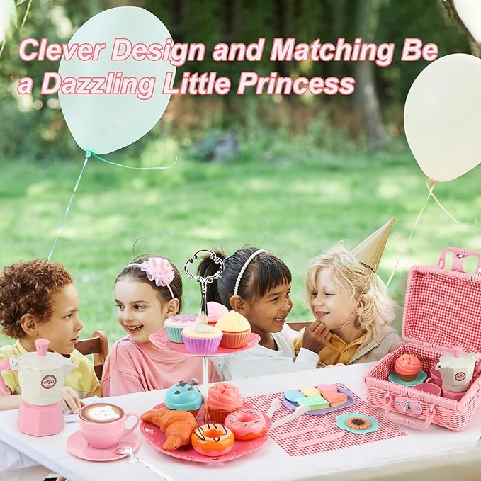 • Whether it's a birthday celebration, a playdate, or just a day of fun, our tea party set is the ideal gift for any occasion. Watch their faces light up with joy!
