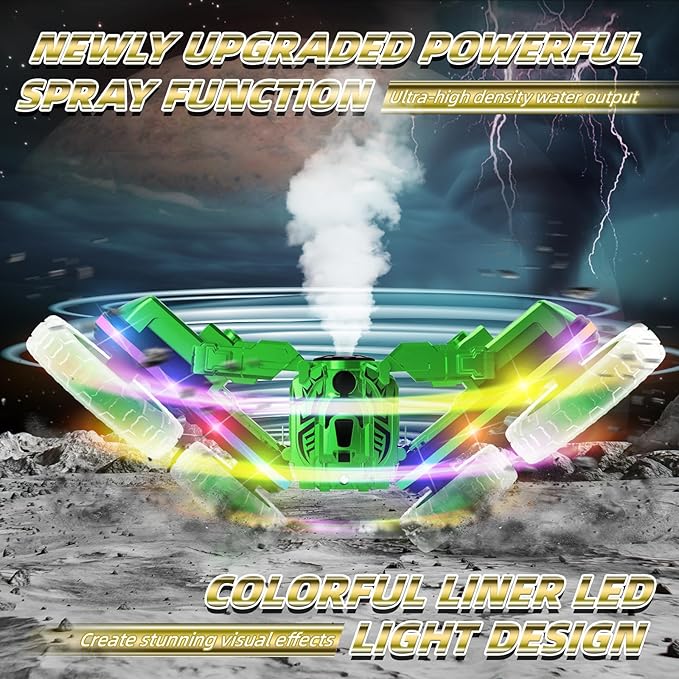 - ๐ใSpray Function & Colorful Linear LightใThe newly upgraded spray function boasts a larger capacity, fuller coverage, and a longer range. The unique, cool linear light design makes your car the most eye-catching presence at night. The spray and lights can emit colorful sprays, providing you with a fun experience unlike other stunt cars.