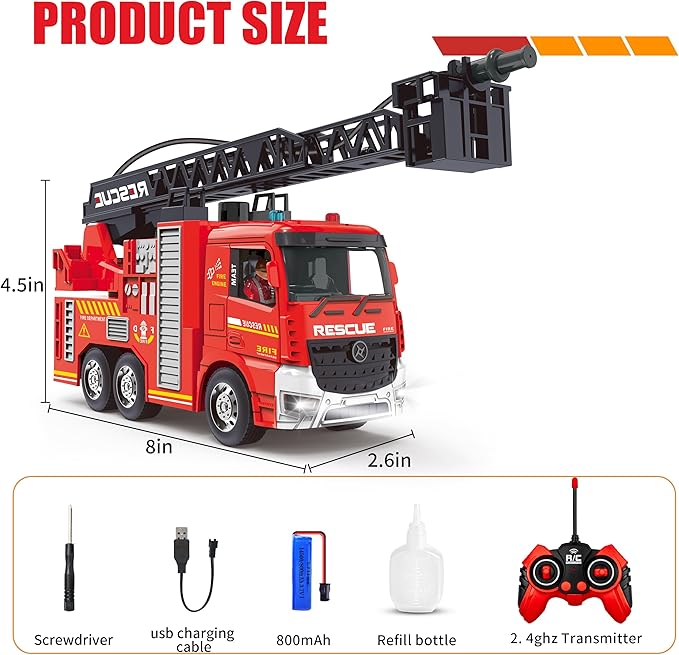 • BEST FIRE TRUCK TOYS FOR KIDS - Realistic RC Fire Truck lets your child enter the heroic world of firefighters. The perfect remote control fire truck toy for 6 year old boys.