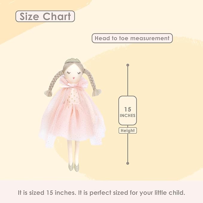 MON AMI Princess Madeline Stuffed Doll - 15”, Plush Doll for Girls, Use as Toy or Room Decor, for Kids of All Ages