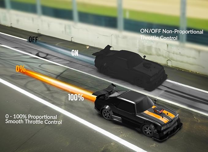 - [ High-Speed 4WD RC Drift Car ] Enjoy the thrill of speed with our 4wd RC drift car, reaching up to 18km/h. Perfect for indoor/outdoor racing adventures. Maneuver with perfect handling- forward, backward, left/right turn, & proportional acceleration. Its shell reduces impact damage during driving & high-quality thick tires prevent tire wear.