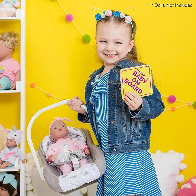 • Versatile Fit: Designed to accommodate dolls up to 20 inches in length, this baby doll car seat is a perfect fit for a wide range of plush toys, stuffed animals, and dolls, including Adora's ToddlerTime Dolls and 16” Adoption Babies collection.