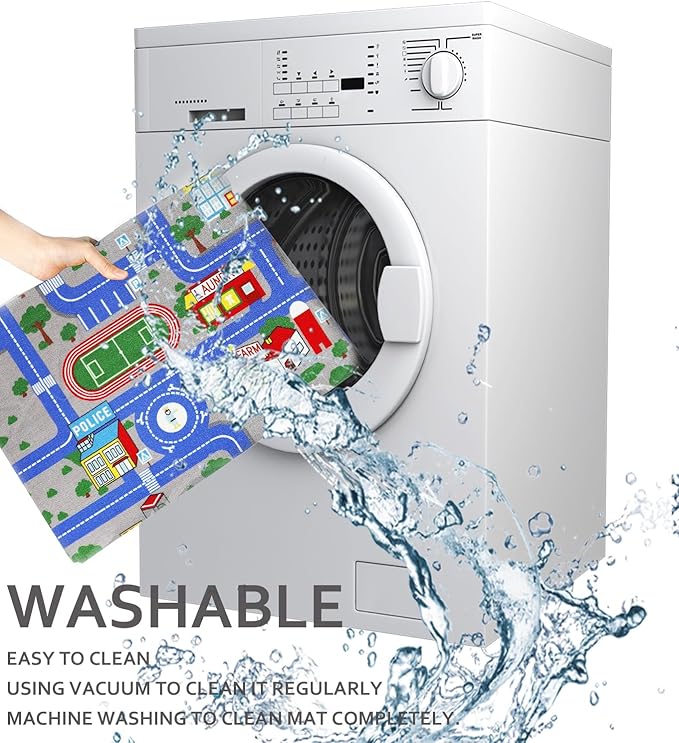 - 【Washable Kids Play Mat】The carpet play mat can washable and easy to clean.Put it in the washing machine as many times as you want and the print will not be damaged.It can ensure your child's long-lasting use. The kids mat can also be folded or rolled up put away when not in use.
