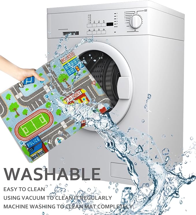 - 【Washable Kids Play Mat】The carpet play mat can washable and easy to clean.Put it in the washing machine as many times as you want and the print will not be damaged.It can ensure your child's long-lasting use. The kids mat can also be folded or rolled up put away when not in use.