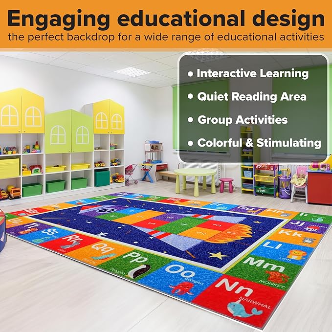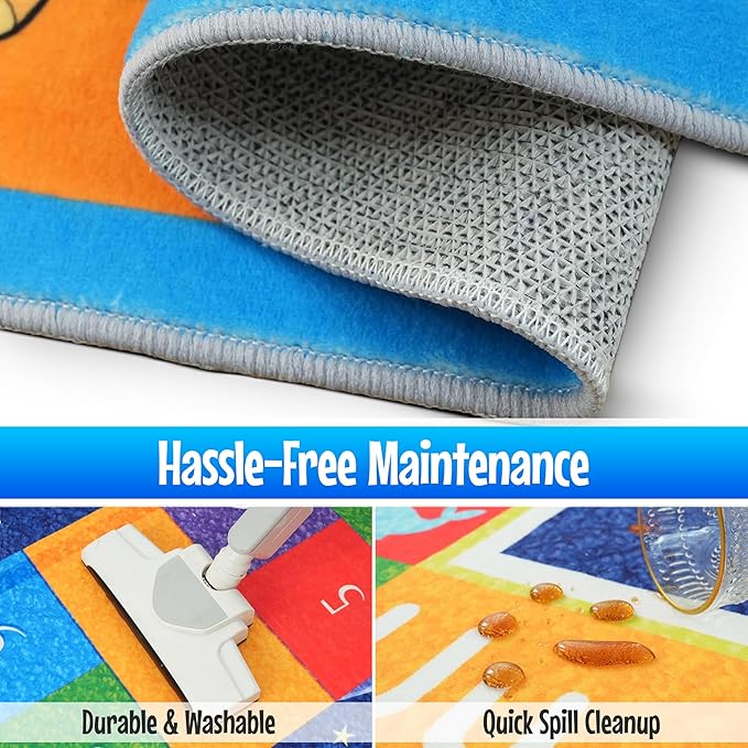 - Versatile Display: Colorful and educational, this kids play rug makes a great addition to any room! Our carpets make the ideal kids rugs for bedroom, game room rug, rug for nursery, classroom rugs, or playroom rugs for endless hours of entertainment!