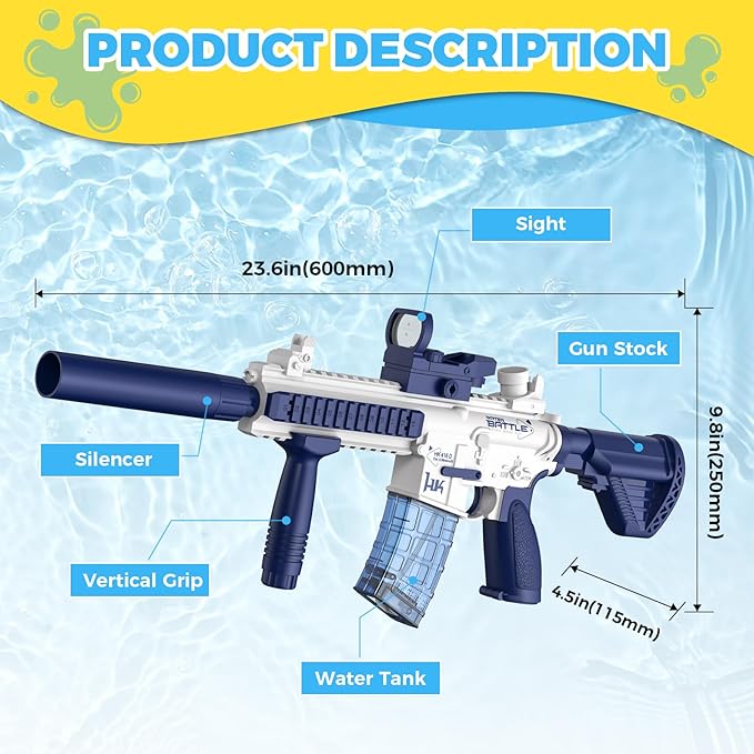 Electric Water Gun,Squirt Gun Toy,Automatic Water Blaster Gun up to 35 FT Long Range,Outdoor Pool Beach Party Shooting Game Toy,Ideal Water Gun Toy Gifts for Kids & Adults (Sea Blue)