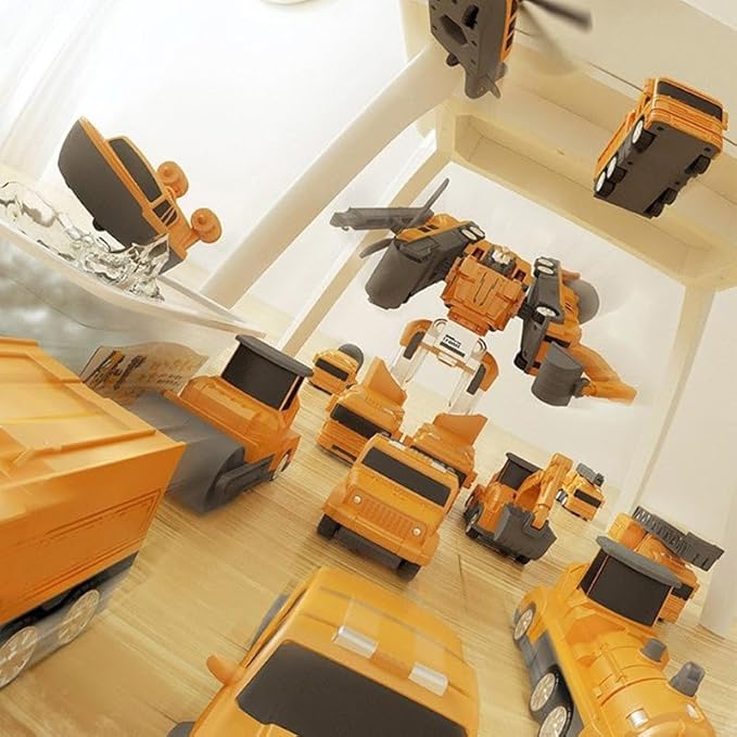 • TRANSFORMING DESIGN: The car in the set, such as trucks, forklifts, excavators, etc., can be assembled together into robots, providing endless entertainment and exploration.