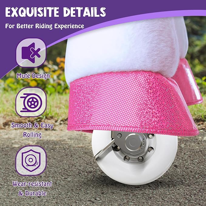 - 【Brake Function】Safety First - PonyCycle ride on toy is equipped with a hand brake, allowing children to bring horse unicorn ponies to a secure stop whenever needed. This adds an extra layer of safety, giving parents peace of mind.
