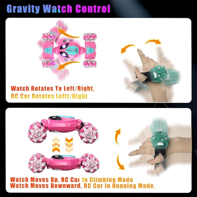 FOTN Remote Control/Gesture Sensing Stunt Car,4WD All-Terrain 2.4Ghz RC Pink Dual Control Off-Road Vehicle ,Lights Music,Modular Lithium Battery, 360° Flips,Snake-Move, Boy/Girl Birthday Gift