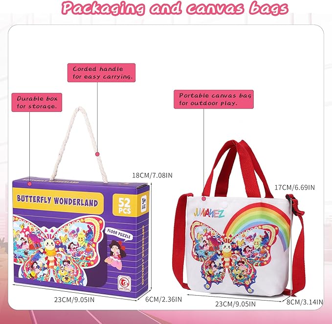 Puzzles for Kids Ages 4-8,52 Piece Unique Large Irregular Animal Shaped Art Puzzle,Floor Puzzles for Kids Ages 3 4 5 6 7 8,Educational Toy Gift Jigsaw Puzzles for Boys Girls (Butterfly Wonderland)