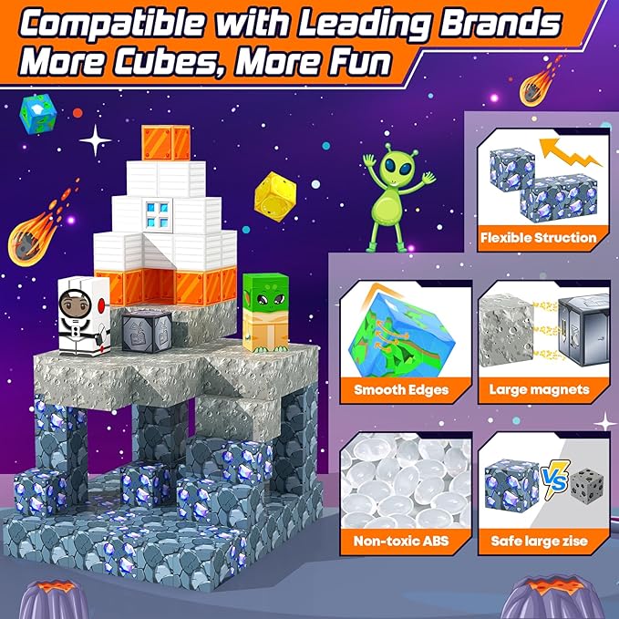 - SAFE & COMPATIBLE DESIGN: Most magnetic block sets contain only 6 magnets on market, While our magnetic blocks are designed with 8 magnets, making them stronger, more stable, and more flexible. Sealed edges and durable structure prevent magnets from breaking or being swallowed. Our magnetic building cubes are compatible with popular market brands, allowing you to expand your collection by adding more building blocks. They are also compatible with other popular market brands magnetic blocks.