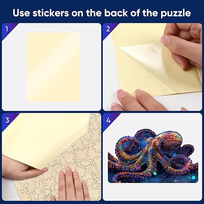 - *Fun Challenging:Fantasy Octopus wooden jigsaw puzzle for kids and adults includes 200 Pcs Unique 3D Shape, each piece Thickness 5mm, 40% thicker and weighs almost twice heavier than other normal wood puzzles, finished size is Premium Wood puzzle Cool present Intersting gift