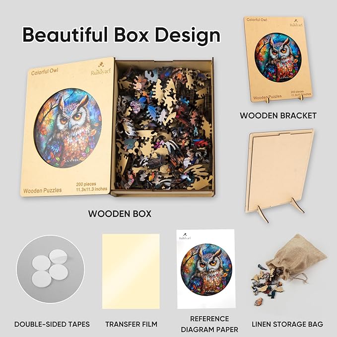 - 【UNSURPASSED QUALITY】: The top production technology, we use 5mm thick HDF wood, UV printing, laser cutting, precision 0.02mm. The texture is extremely smooth, they will not break or fade, free of formaldehyde and odor, and have perfect locks! Our vintage owl wooden puzzles can be surprisingly preserved for decades