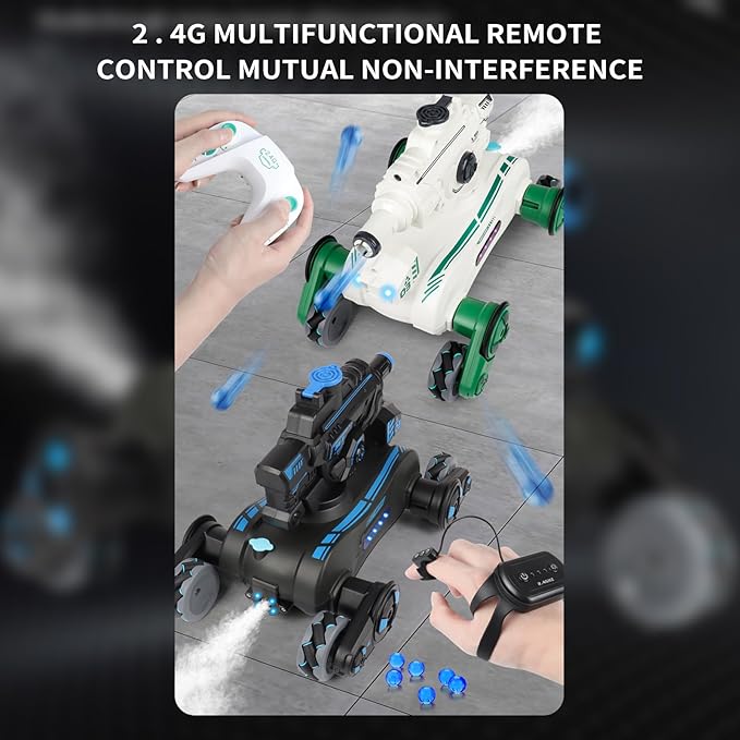 - Support Interactive Multiplayer Battles: The remote control tank is equipped with 2.4G controllers, including a handle remote control and a watch. This interference-free control system enables engaging multiplayer battles. Children will harvest their unique happiness together.
