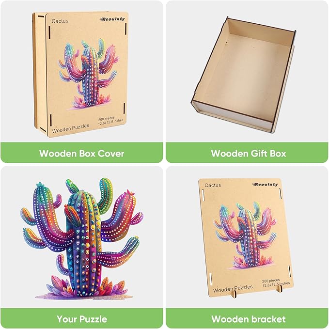 Wooden Jigsaw Puzzles - Cactus Succulent Plants, 200 Piece Luxurious Shaped Wooden Puzzles for Adults and Kids, Family Game, Medium 11.2 * 11.2in