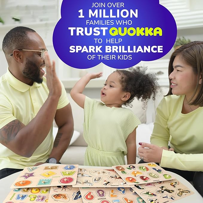 • SURPRISE YOUR KIDS: our wooden puzzles for kids 1-3 also works well as preschool puzzles for kids ages 2-4; great as indoor & outdoor activities; Kids enjoy time with friends, moms, dads, grannies while playing with modern educational toys by QUOKKA
